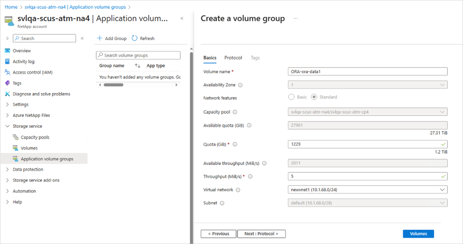 This article describes how to deploy all required volumes for your Oracle database using Azure NetApp Files application volume group for Oracle.