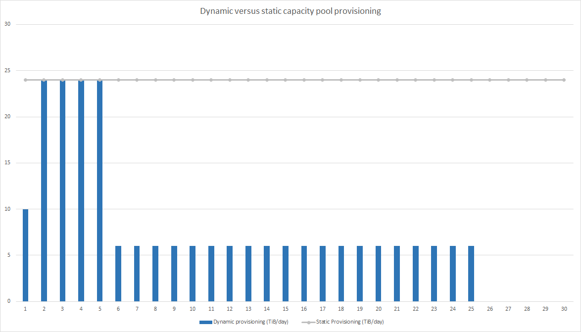 Example 1: One month cost with static versus dynamic capacity pool provisioning