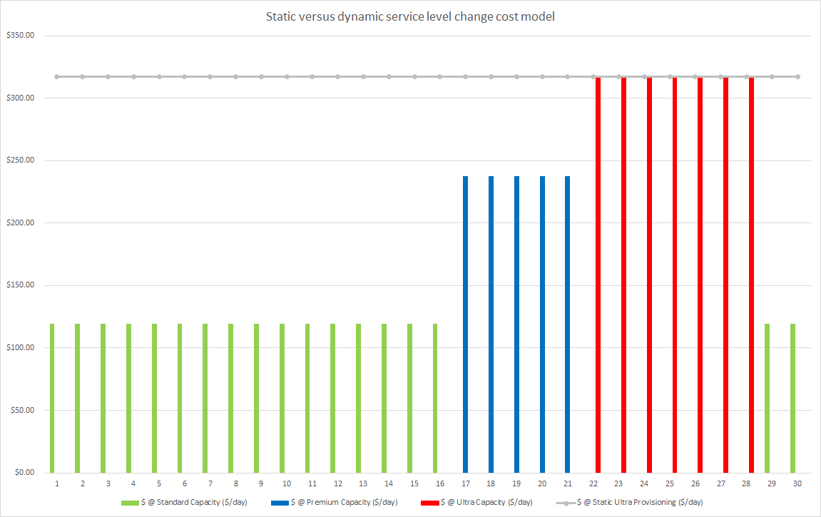 Example 2: One month cost with and without dynamic service level change