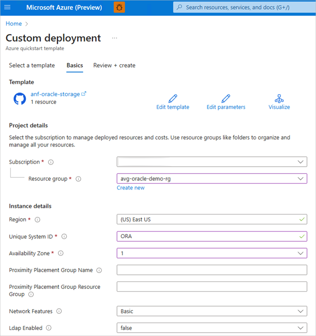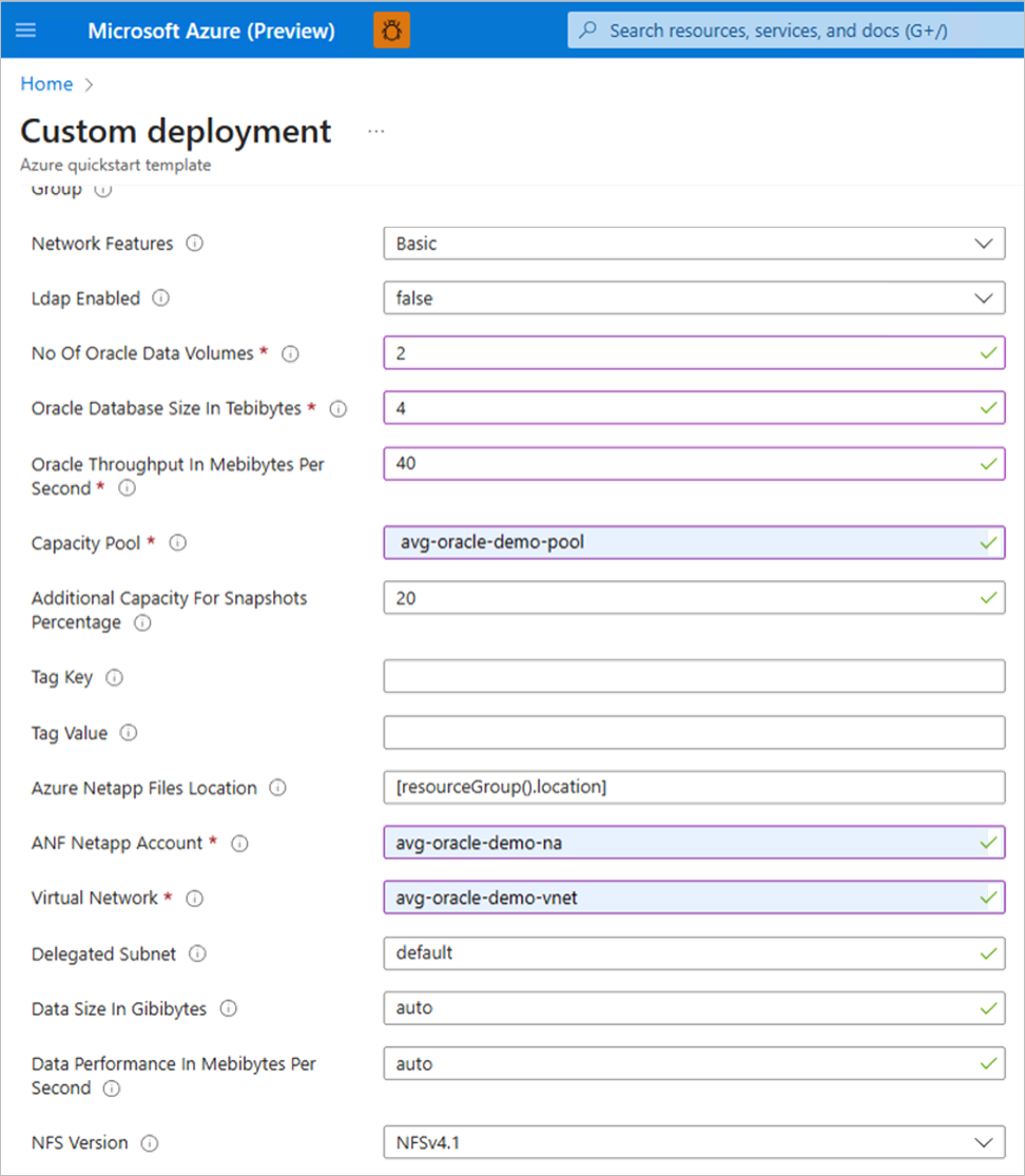 For detailed documentation on how to use the ARM template, see ORACLE Azure NetApp Files storage.