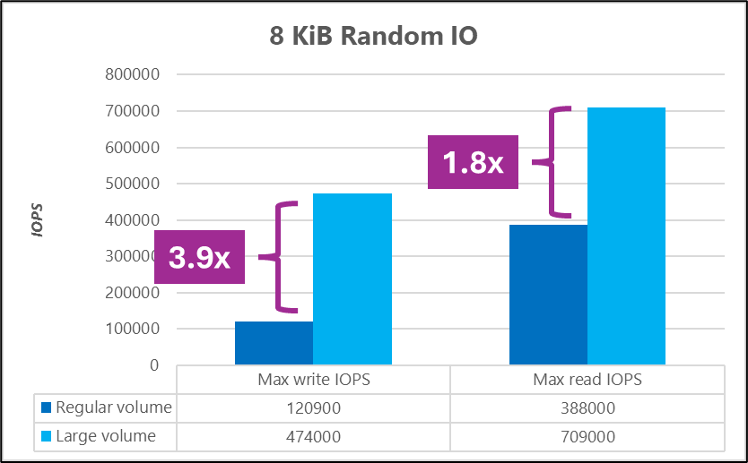 For instance, the following graphs show that a large volume can deliver two to three times the performance at scale of a regular volume.