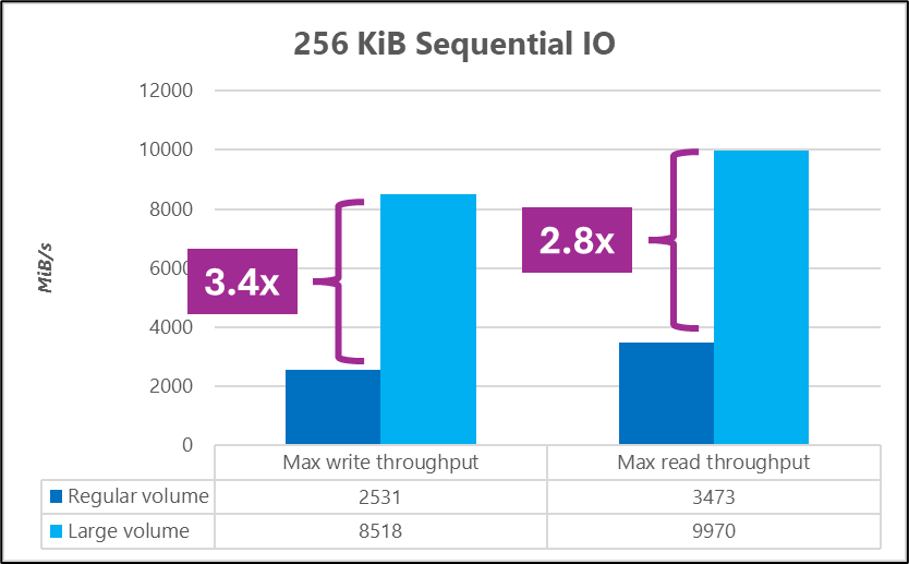 | Performance | The large volume performance limit is 12,800 MiB/s on all service levels. |