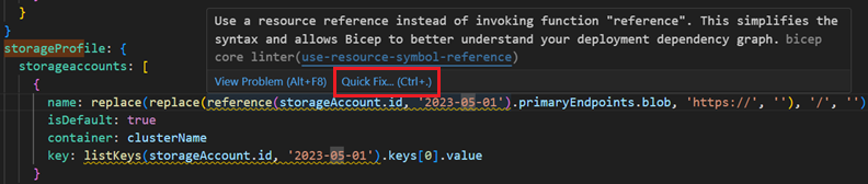 This rule detects suboptimal uses of the reference and list functions. Instead of invoking these functions, using a resource reference simplifies the syntax and allows Bicep to better understand your deployment dependency graph.