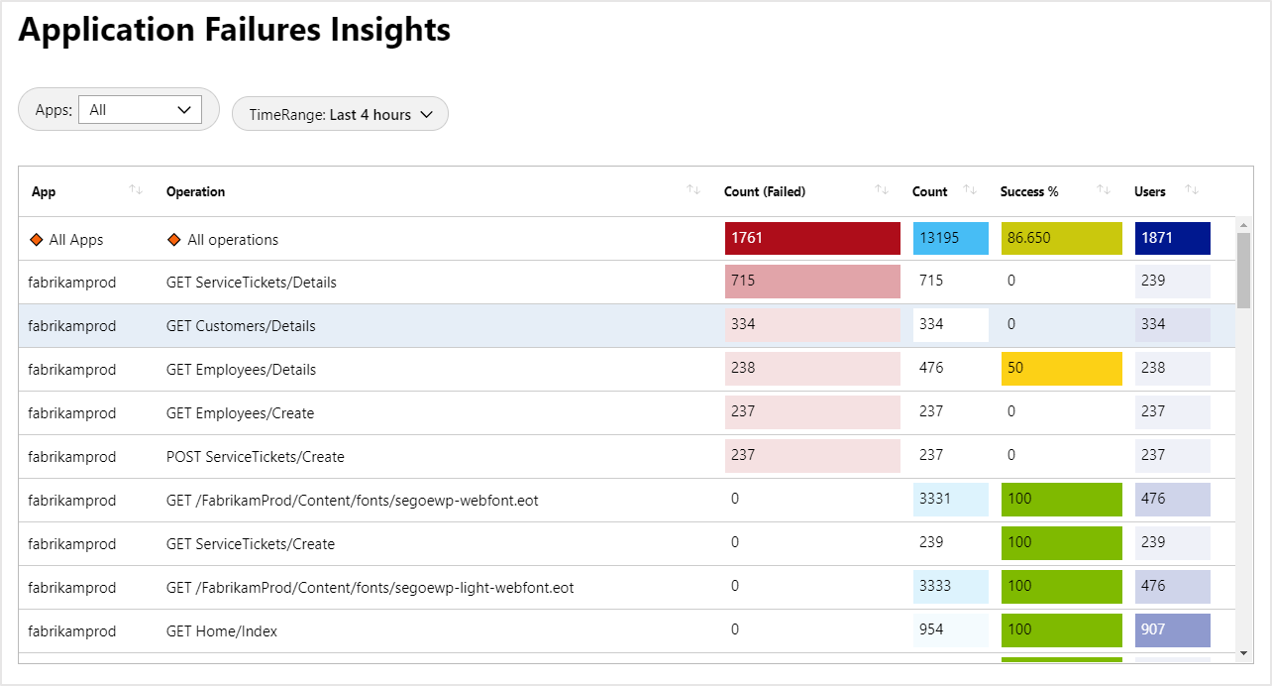 The Performance and Failures tabs simplify this process by bringing together performance and failure diagnostic views for many common resource types.