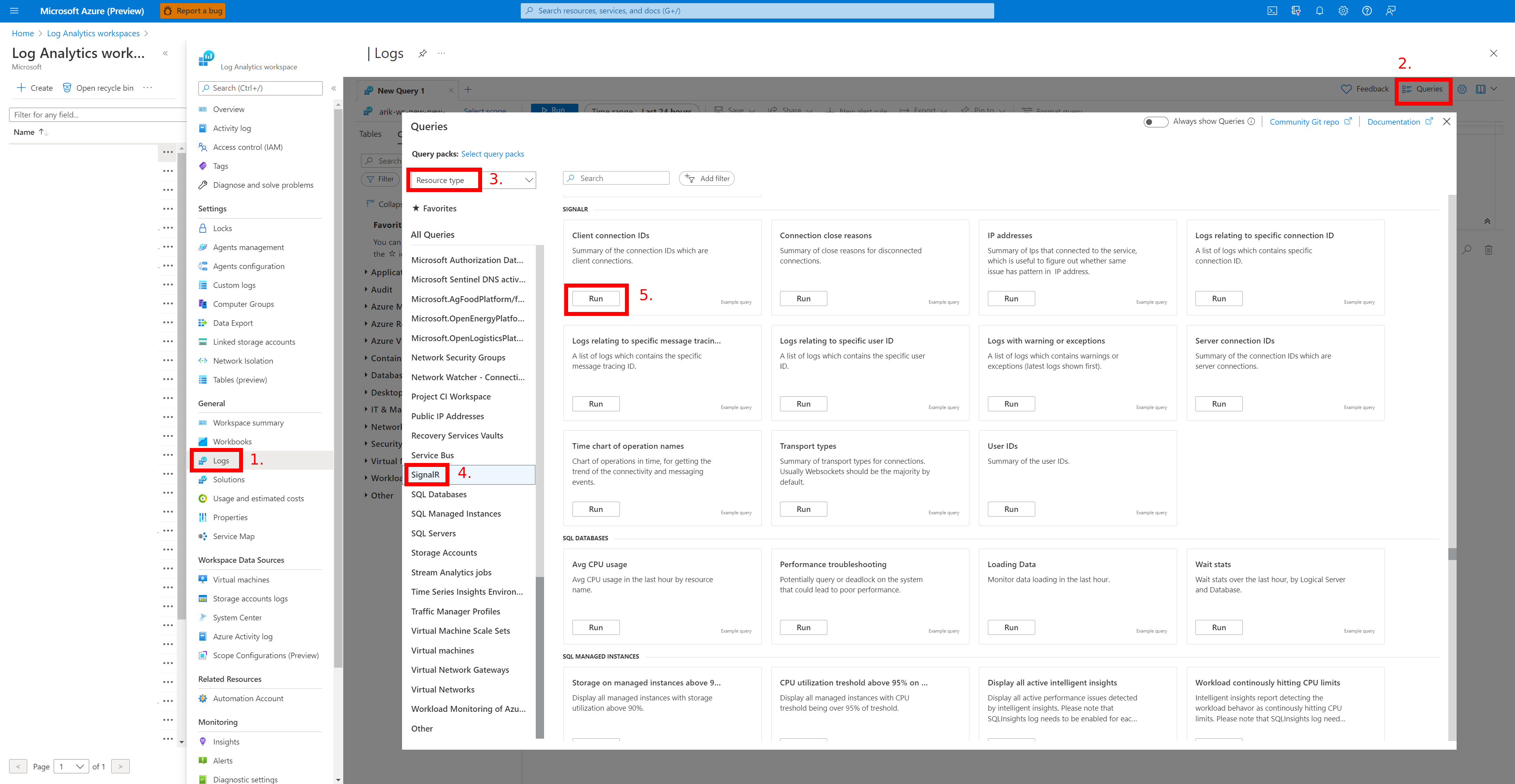 For example queries for Azure SignalR Service, see Queries for the SignalRServiceDiagnosticLogs table.