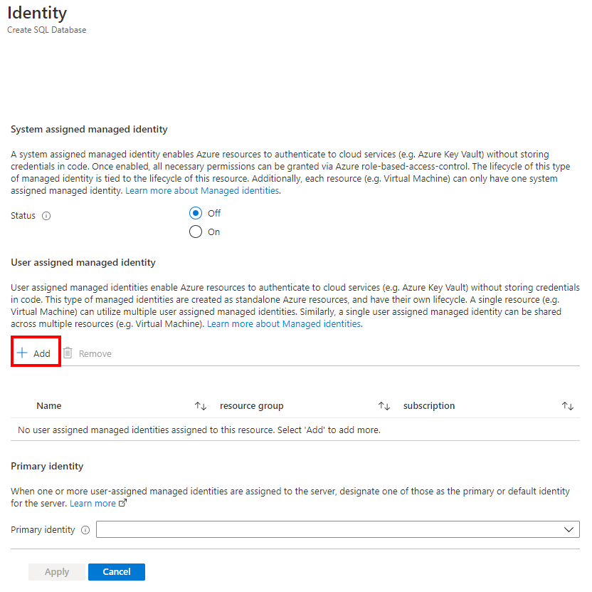 Under Primary identity, select the same user-assigned managed identity selected in the previous step.