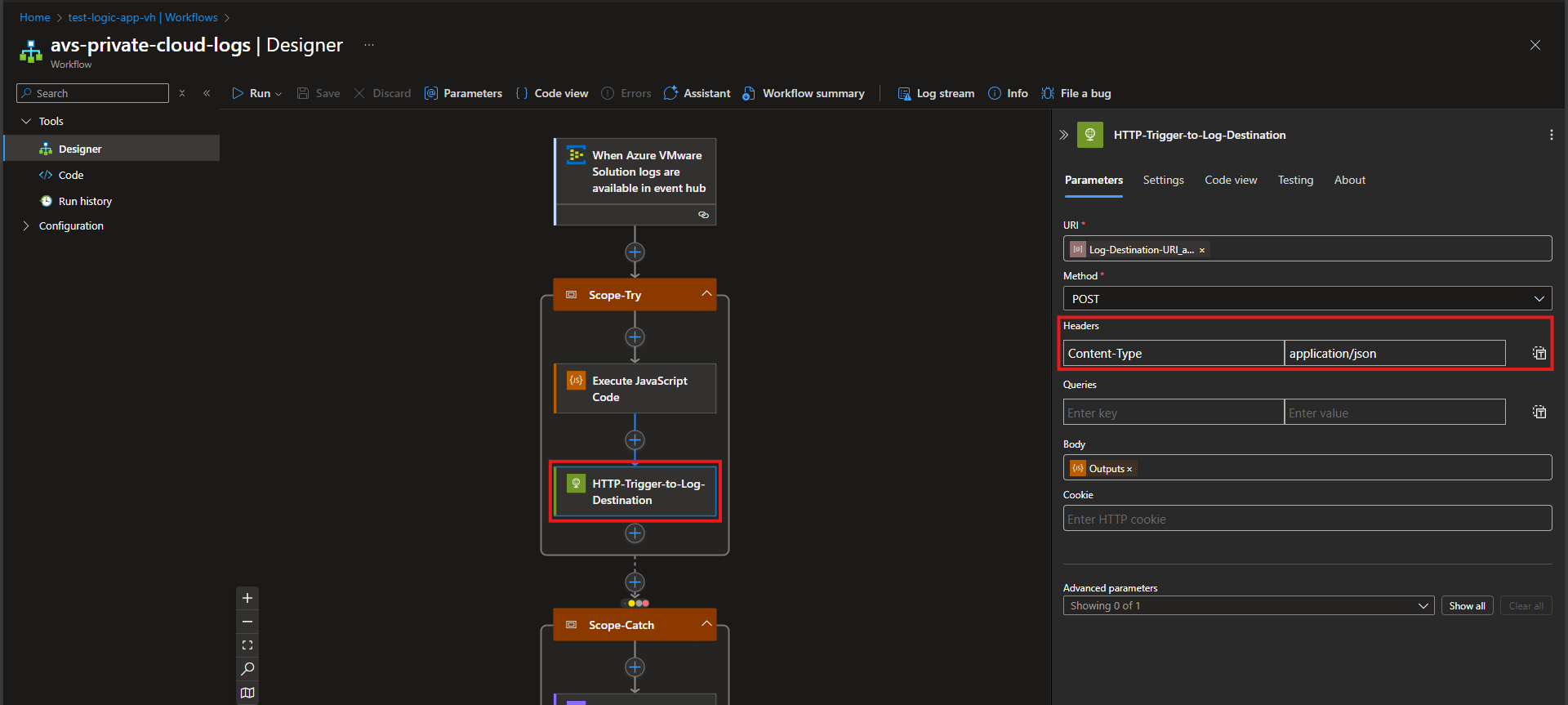 By default, the HTTP-Trigger-to-Log-Destination trigger in the workflow you created has the following key-value pairs under Headers: