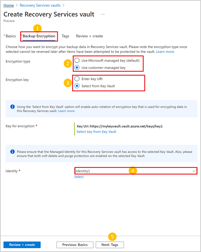 You now need to permit the Recovery Services vault's managed identity to access the key vault that contains the encryption key.