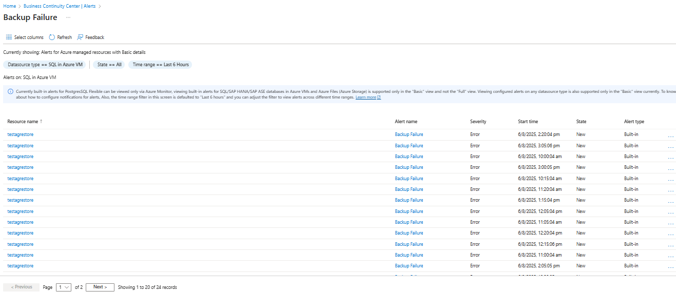 Azure Backup raises built-in alerts via Azure Monitor for the following SQL database backups scenarios: