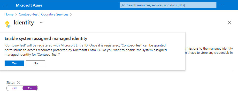 c. In the Cognitive Services tab, click Enable Managed Identity.