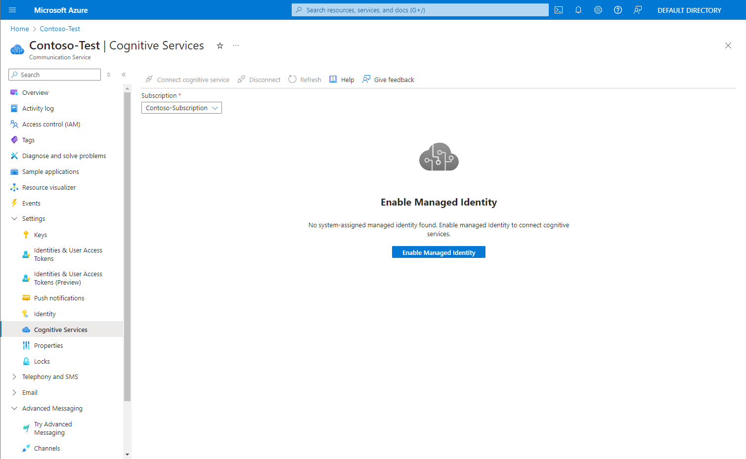 a. Open your Azure Communication Services resource and click the Cognitive Services tab.