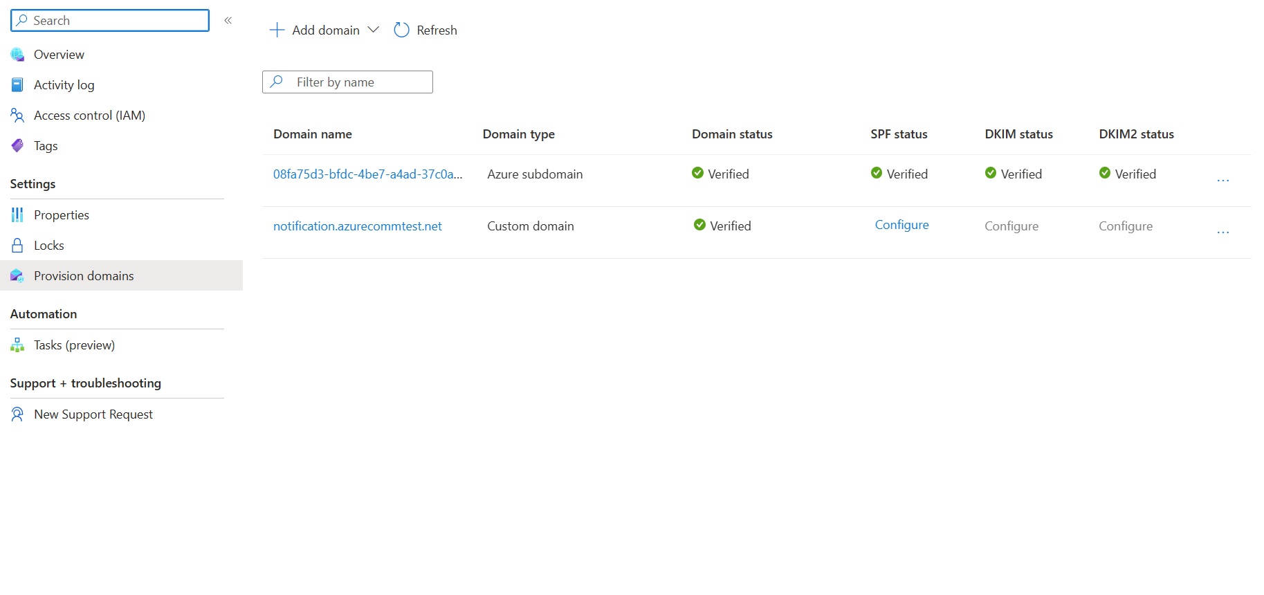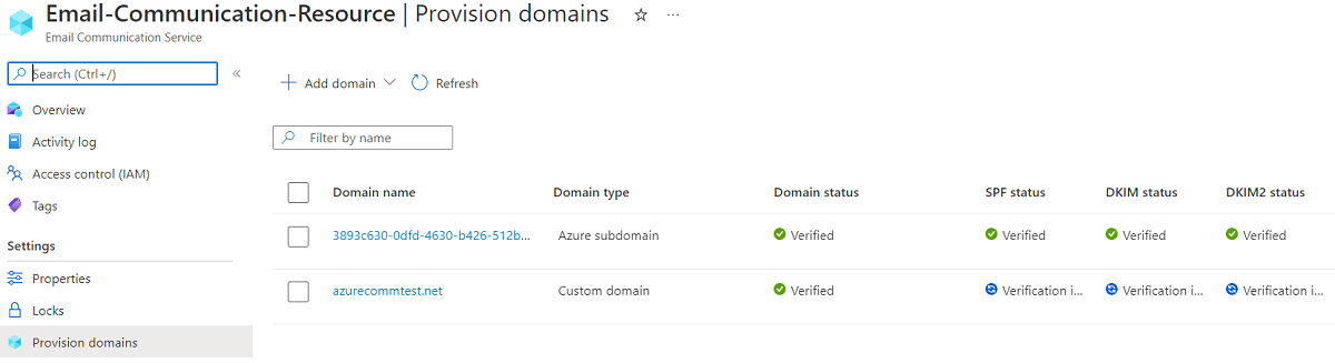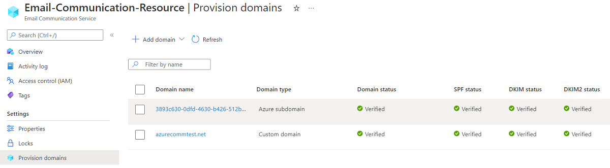 - An Azure Communication Services Email Resource created and ready to add the domains. See Create and manage Email Communication Service resources.