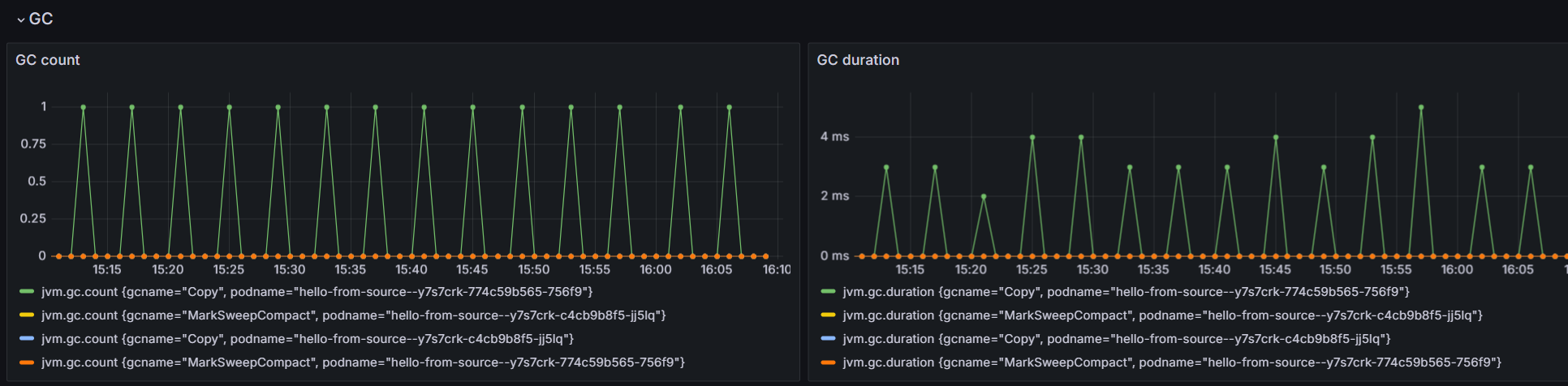 Screenshot of JVM GC tab in Grafana.