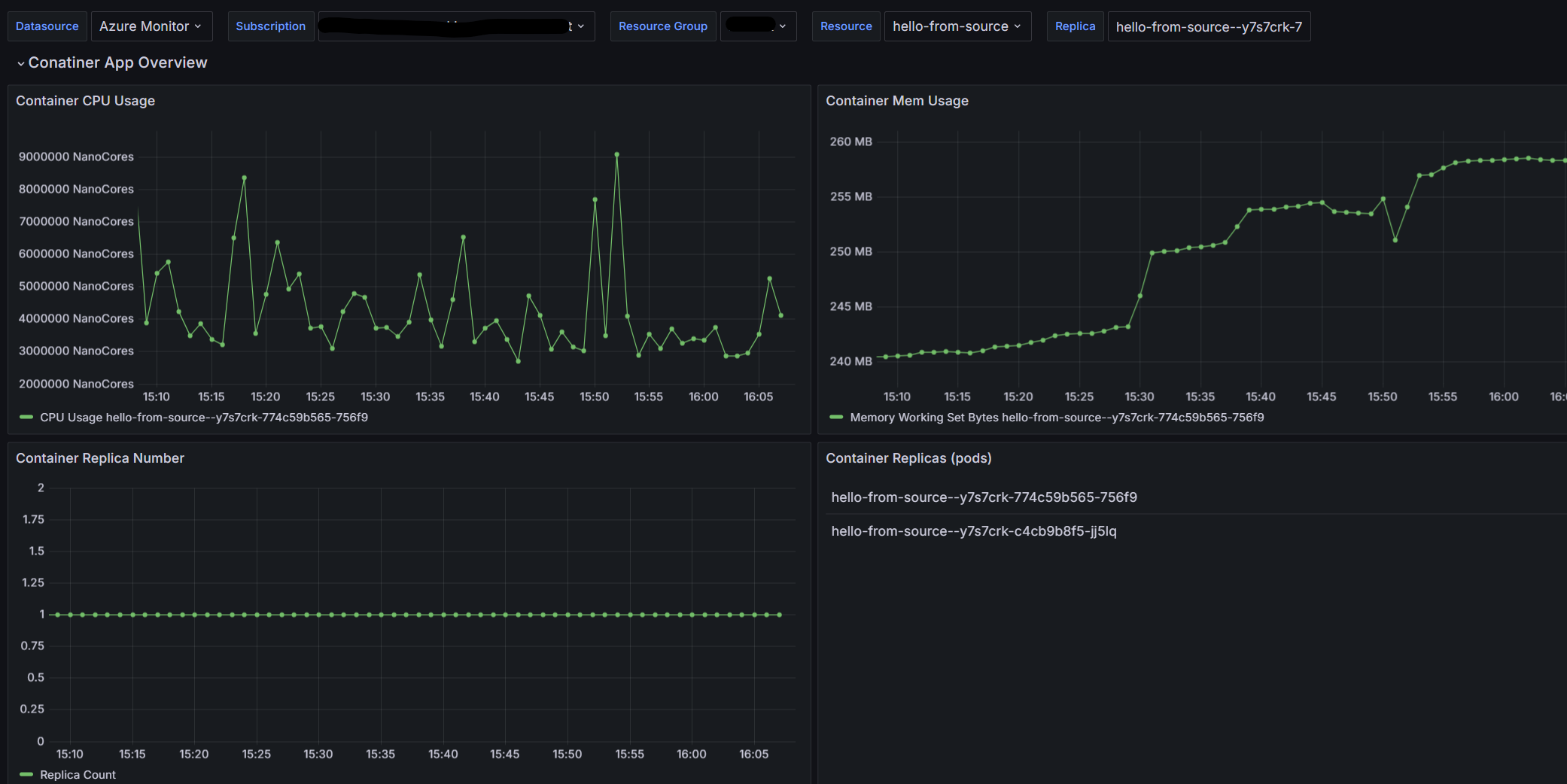 SUBSCRIPTION_ID The subscription ID which you use to create your Azure Container Apps and Azure Managed Grafana instance.