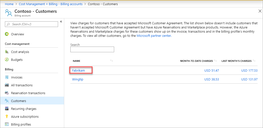 Check the agreement type to determine whether you have access to a billing account for a Microsoft Partner Agreement.