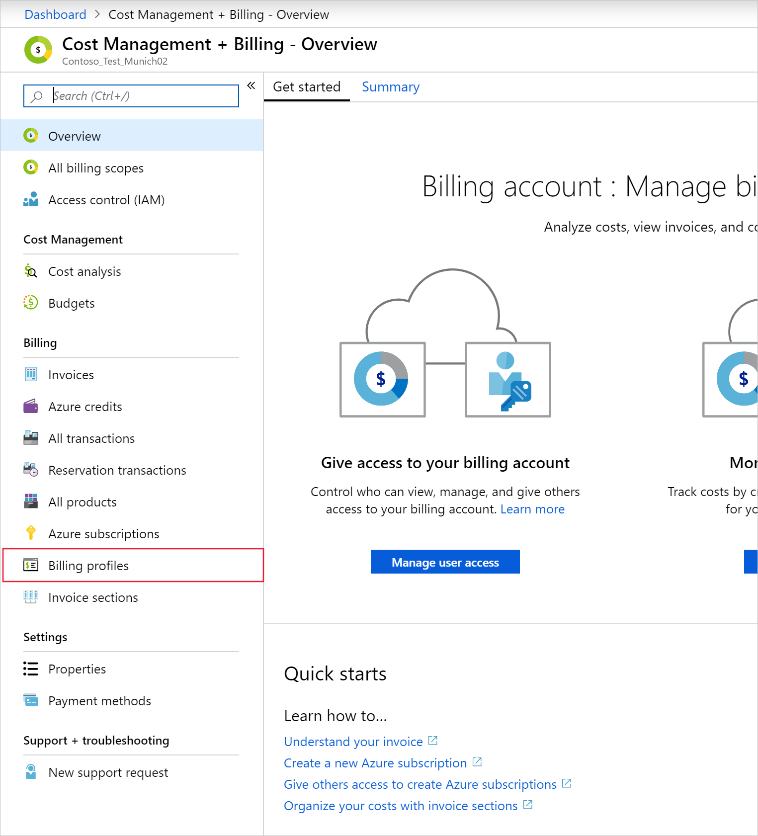 On the left menu, select Billing profiles.
