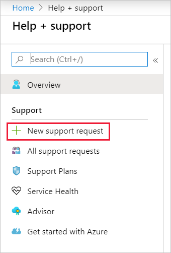 Sign in to the Azure portal, and then search for and select Help + support.