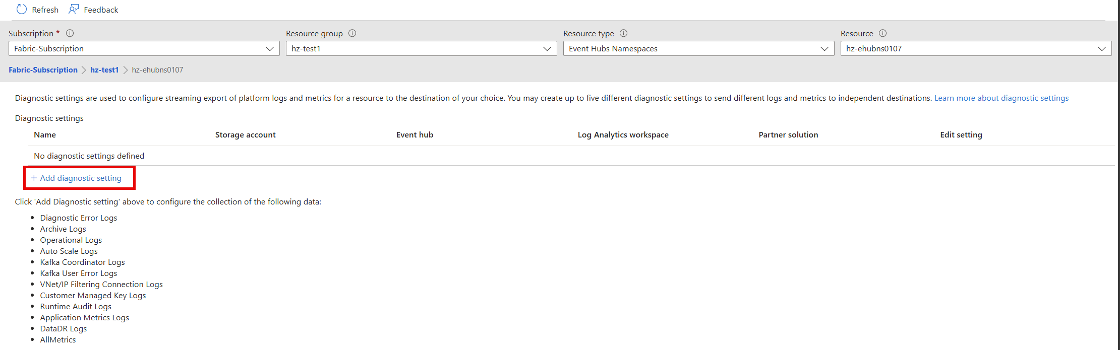 3. Select Add diagnostic setting.