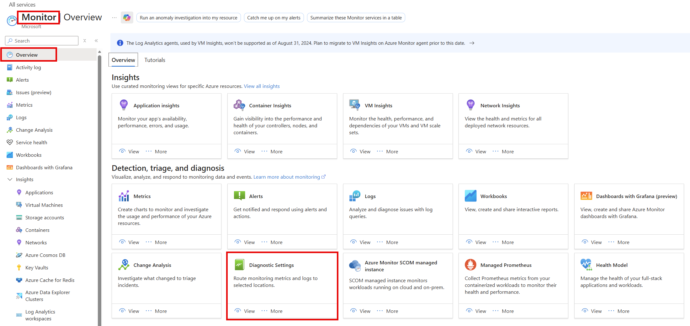 2. Under Monitoring, select Diagnostic settings.