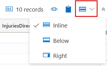 Select the icon on the top right of the result grid to switch reading pane modes. Choose between the following reading pane modes: Inline, Below, and Right.