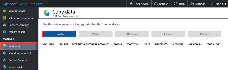 Canceling a copy job doesn't delete any data already copied to the device during a job. To delete data already copied to your Data Box device, reset the device.