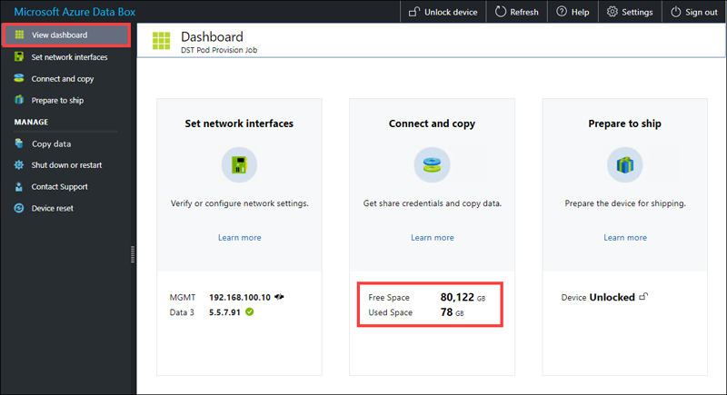 Advance to the next tutorial to learn how to ship your Data Box device back to Microsoft.