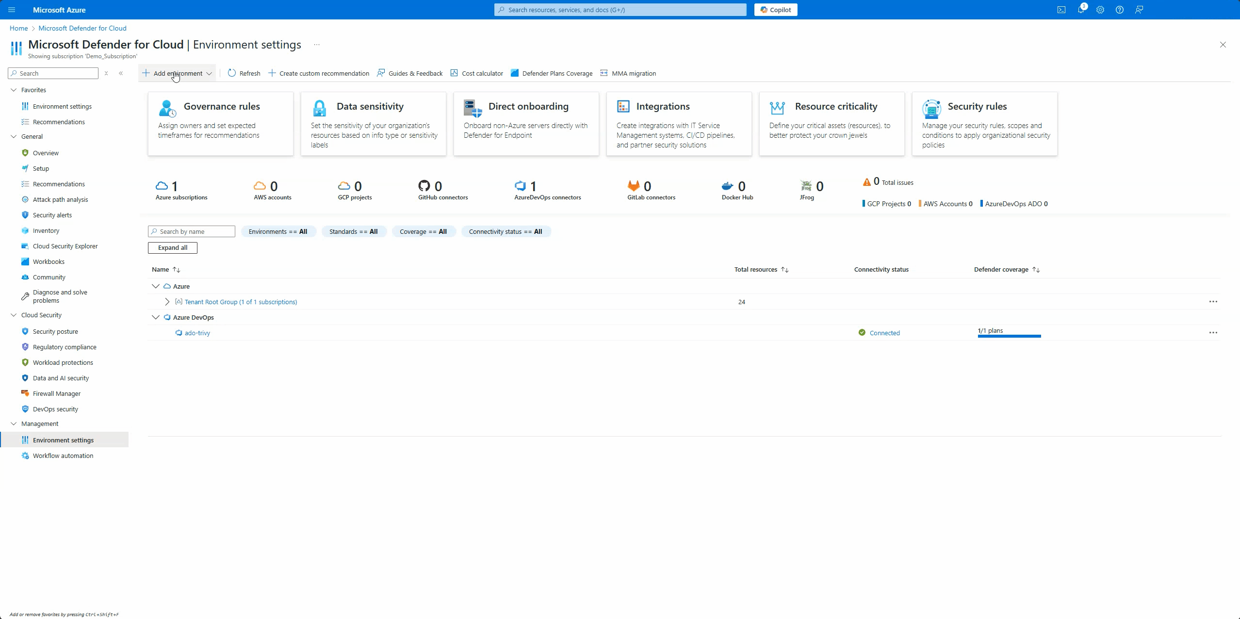 Creating the connector enhances security by providing foundational cloud security posture management recommendations for repositories, pipelines, and service connections.