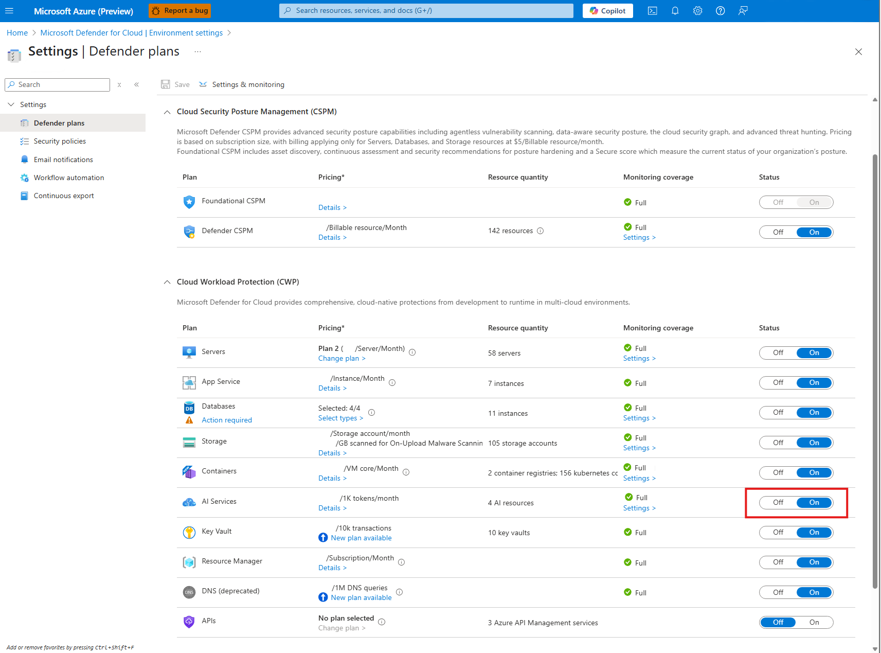 This feature requires a Microsoft Purview license, which isn't included with Microsoft Defender for Cloud's Defender for AI Services plan.