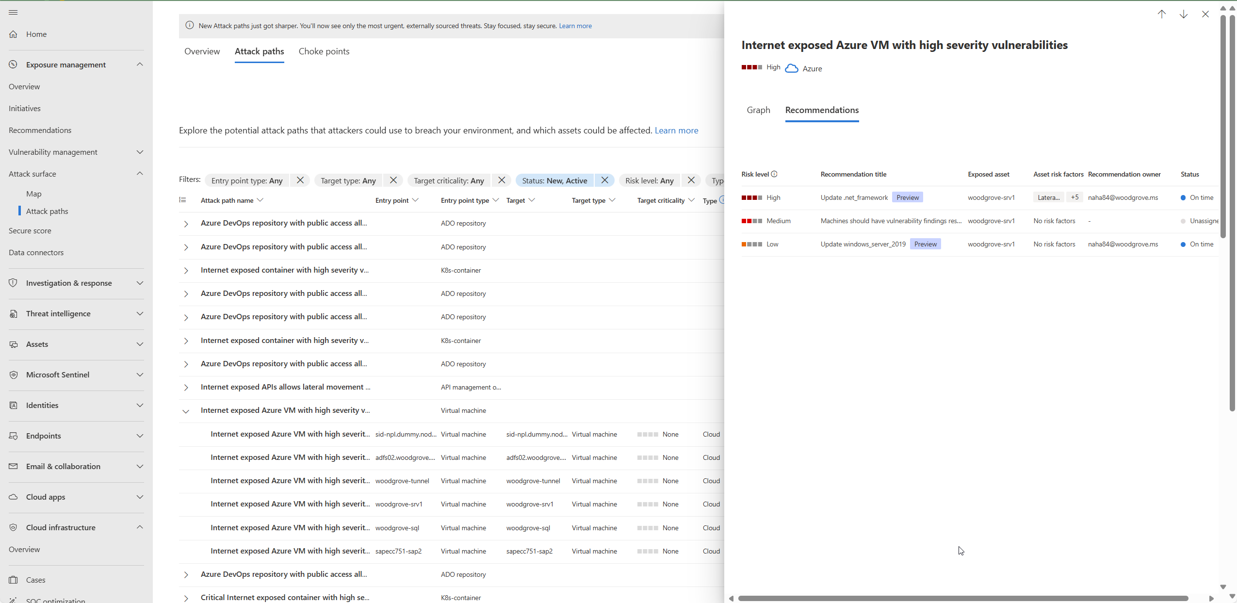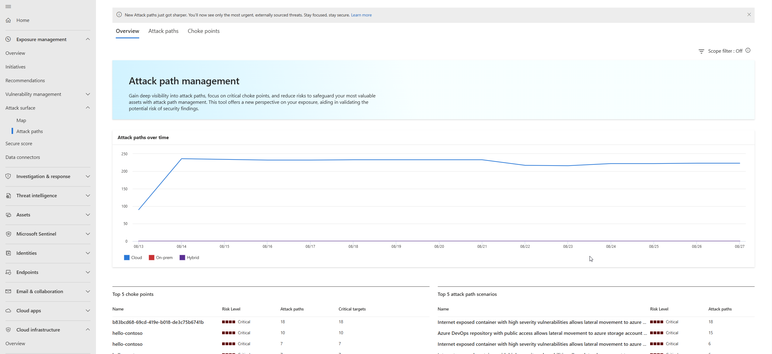 2. Navigate to Exposure Management > Attack surface > Attack paths. You will see an overview of your attack paths.