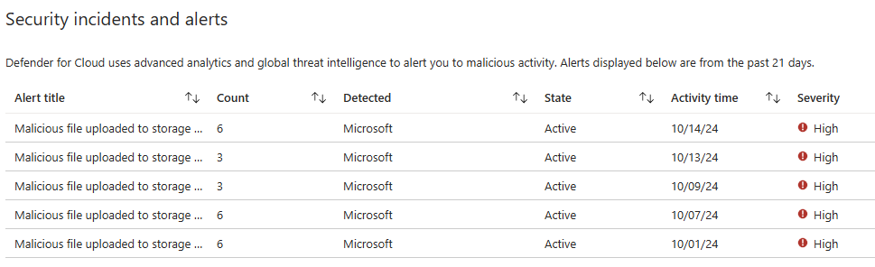 - Defender for Storage with malware scanning: Must be enabled on the subscription or individual storage accounts.