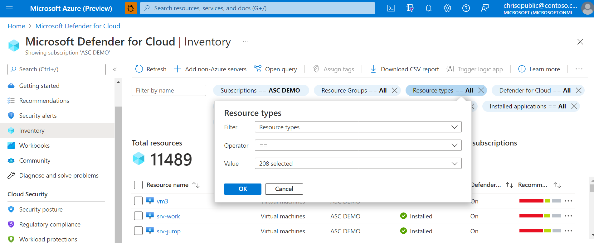 To view all the active recommendations for your resources by resource type, use the asset inventory page in Defender for Cloud and filter to the GCP resource type that you're interested in.