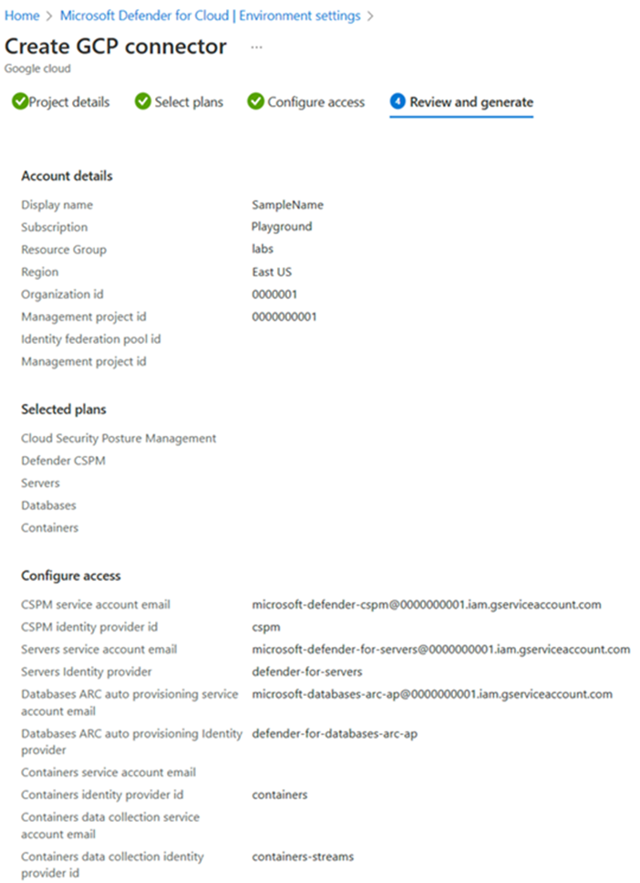 There are four parts to the onboarding process that take place when you create the security connection between your GCP project and Microsoft Defender for Cloud.