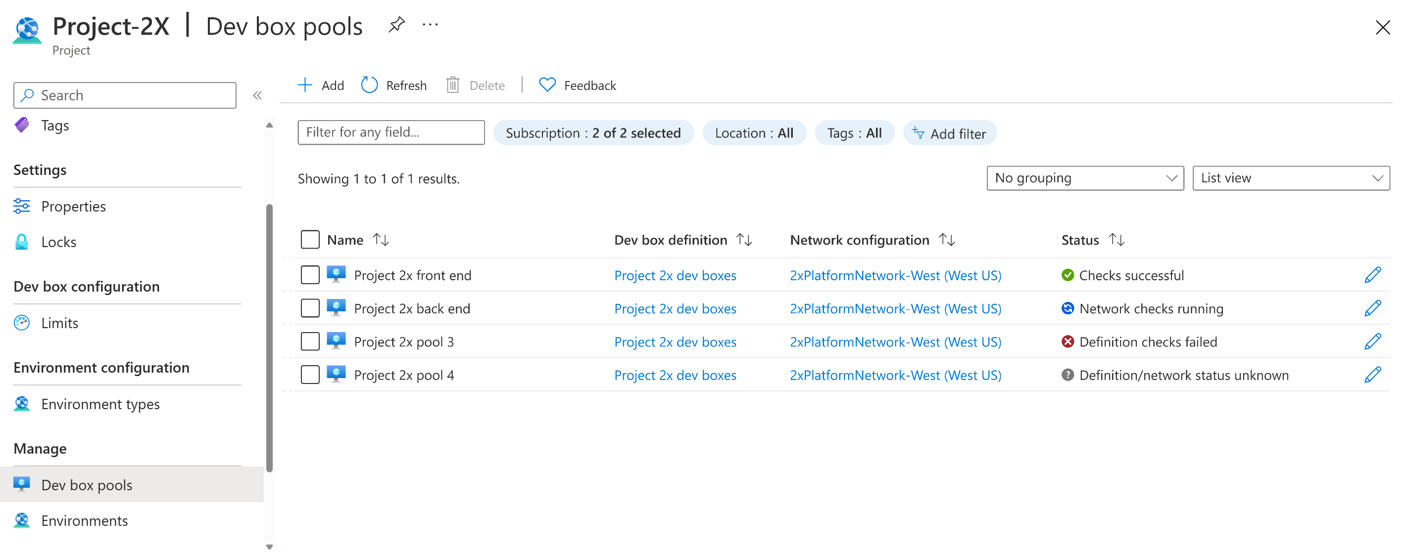 Check that the new dev box pool appears in the list. You might need to refresh the screen.