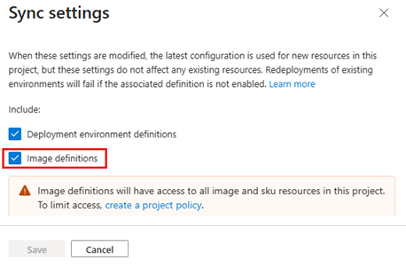 - If Image definitions is cleared, select it and select Save.