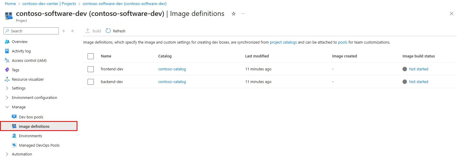 Example: contoso-frontend-westUSDefinition From the image definition section of the list, select an image definition.