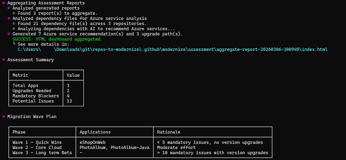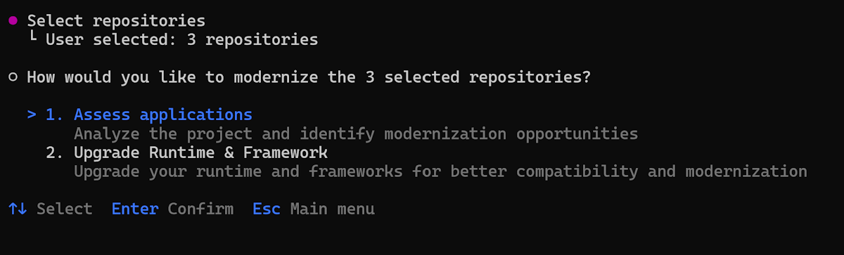 - Run batch upgrade across repositories - Apply consistent upgrades based on assessment findings.
