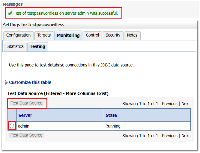 Under the Domain Structure, select Services, Data Sources, then testpasswordless.