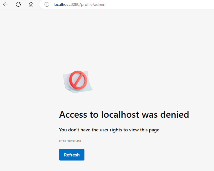 Both /profile/user and /profile/admin links point to the profile page resource, defined in ProfilePage.java, as shown in the following example code. This page is accessible only to authenticated users by using the @RolesAllowed("**") annotation from the jakarta.annotation.security.RolesAllowed package. The @RolesAllowed("**") annotation specifies that only authenticated users can access the /profile path.