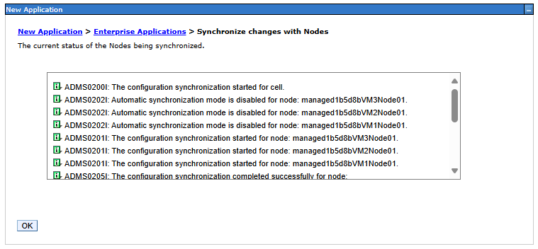 After you complete all the steps, select Finish, and then on the next page select Save. You should see messages for Synchronize changes with Nodes, as shown in the following screenshot: