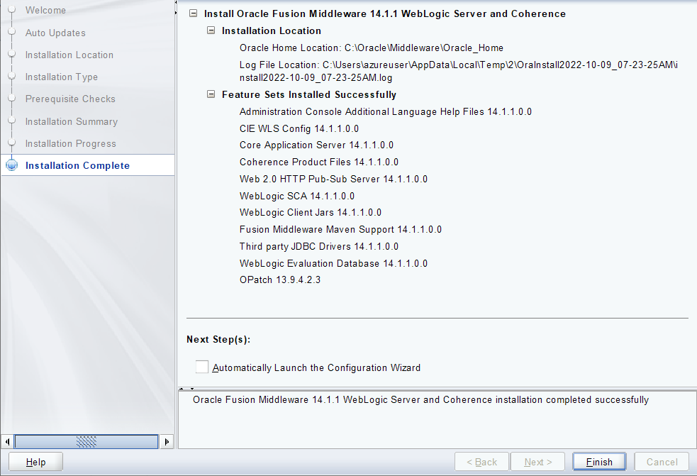 If you prefer a fully automated solution that does all of these steps on your behalf on GNU/Linux VMs, directly from the Azure portal, see Quickstart: Deploy WebLogic Server on Azure Virtual Machine using the Azure portal.