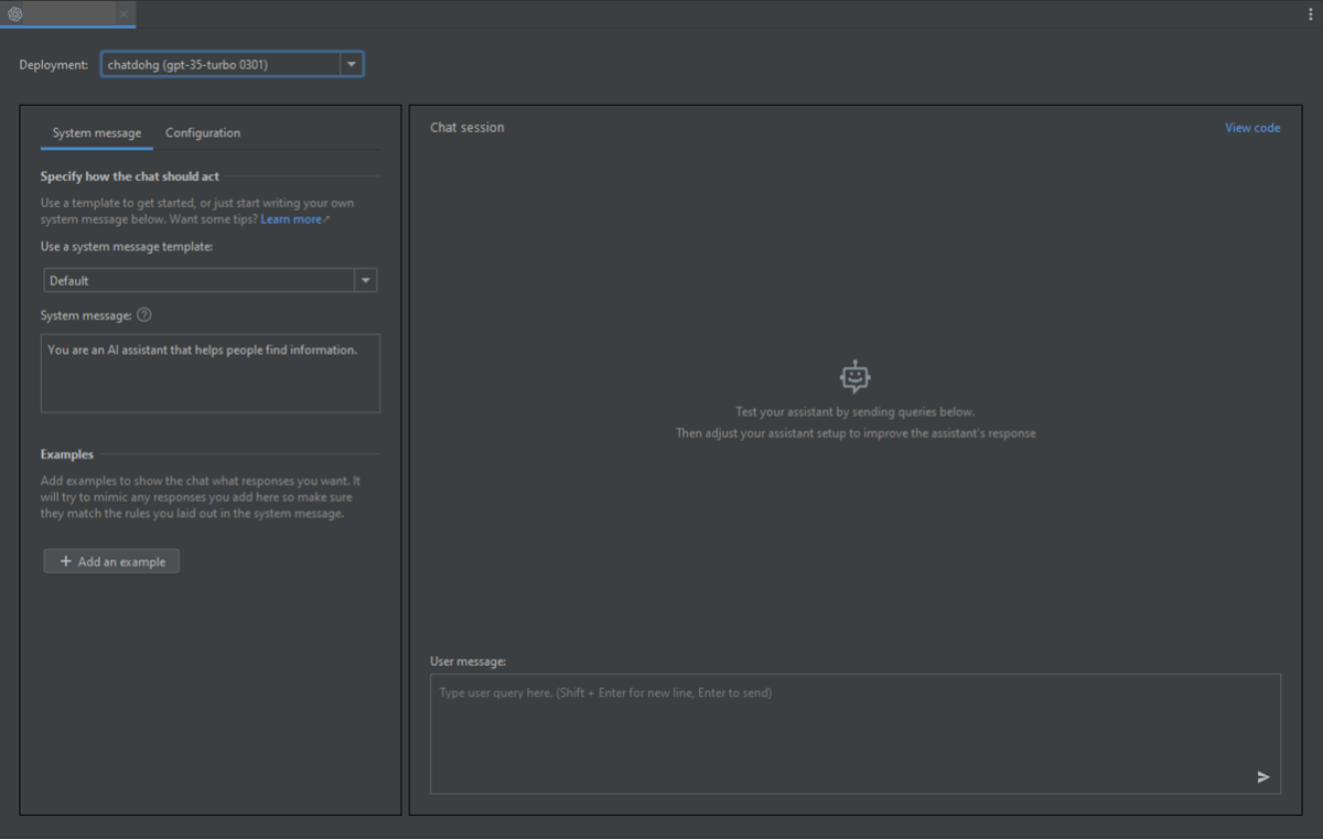 You can start exploring OpenAI capabilities through the Azure OpenAI Studio Chat playground in IntelliJ IDEA.