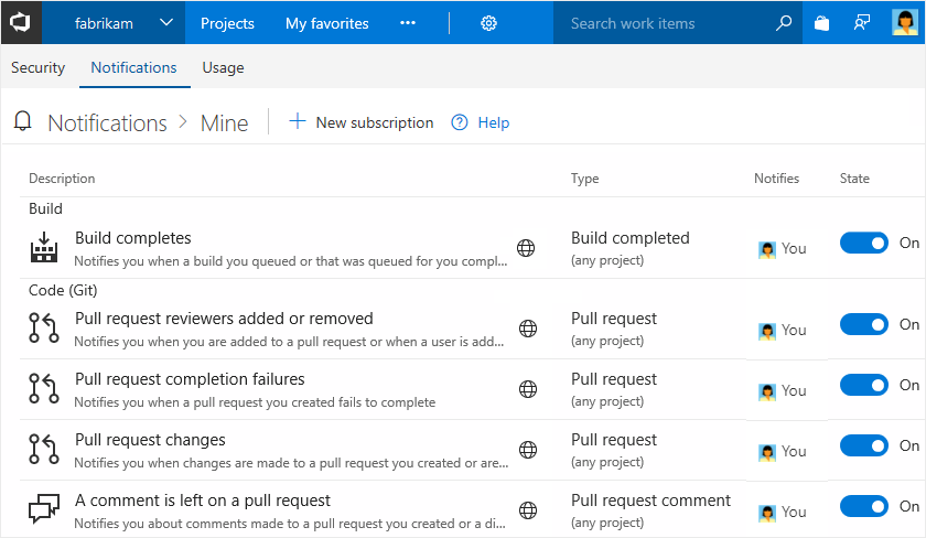 There are many ways you can manage your personal notifications in Azure DevOps: