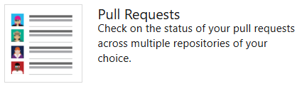 A configurable widget to that displays active PRs requested by the team, or assigned to or requested by the person logged in. Select the team and up to 10 repositories for the pull requests of interest.
