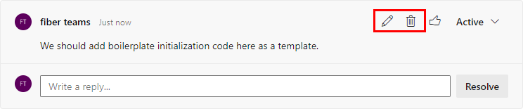 New comments start in Active status. Select Resolve or Reply & resolve to update comment status to Resolved.