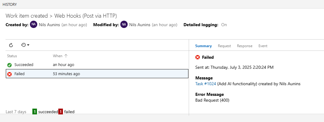 I'm getting this Azure DevOps service hook error: [PASTE YOUR ERROR MESSAGE HERE]