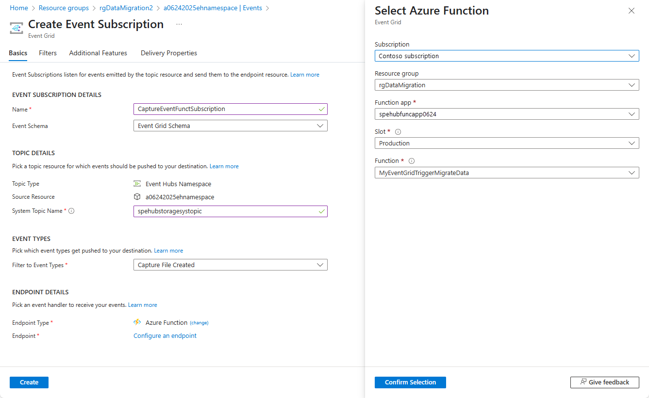 - For more information about setting up and running the sample, see Event Hubs Capture and Event Grid sample.