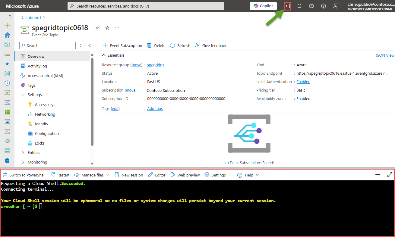 In the Azure portal, launch Cloud Shell.