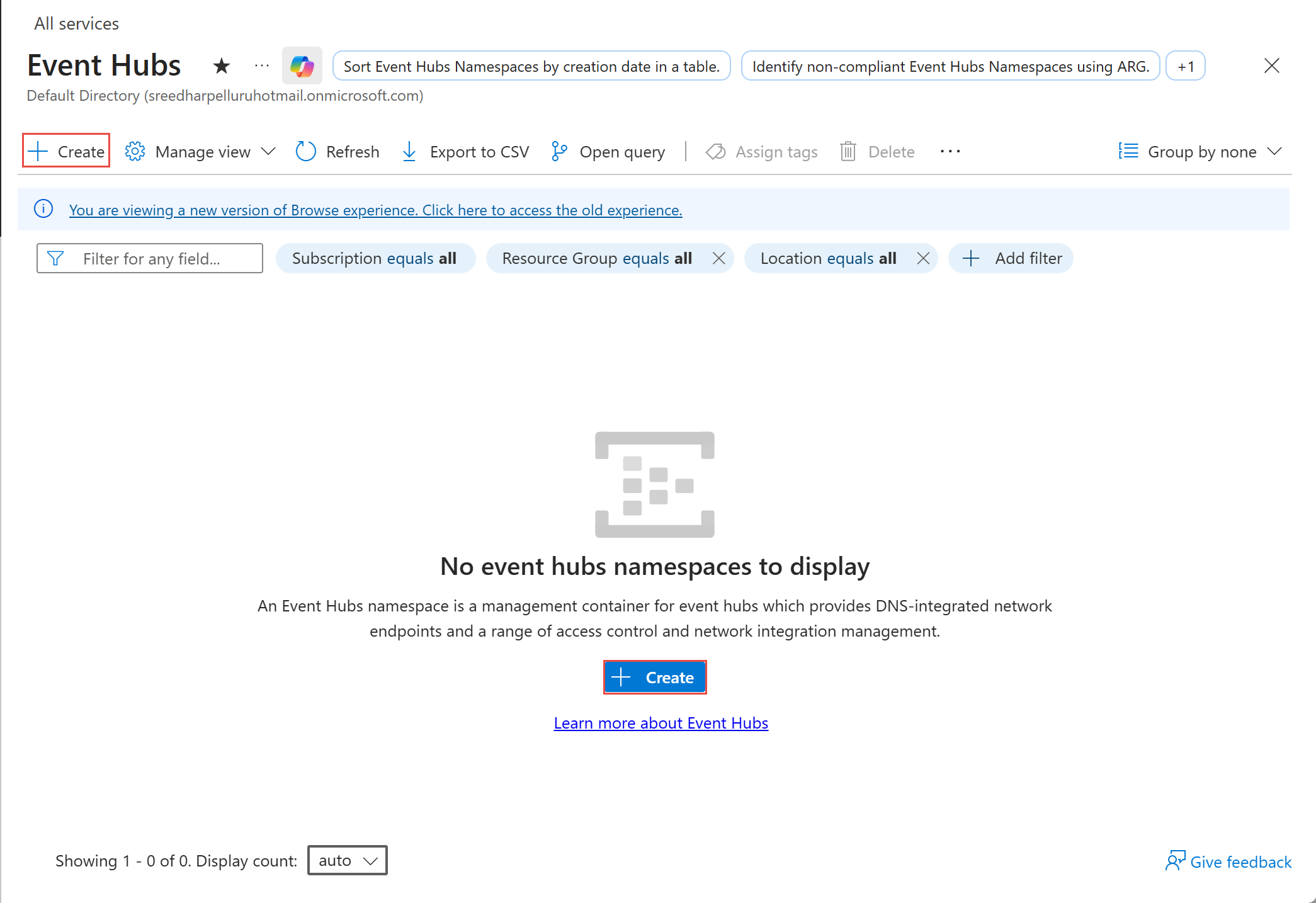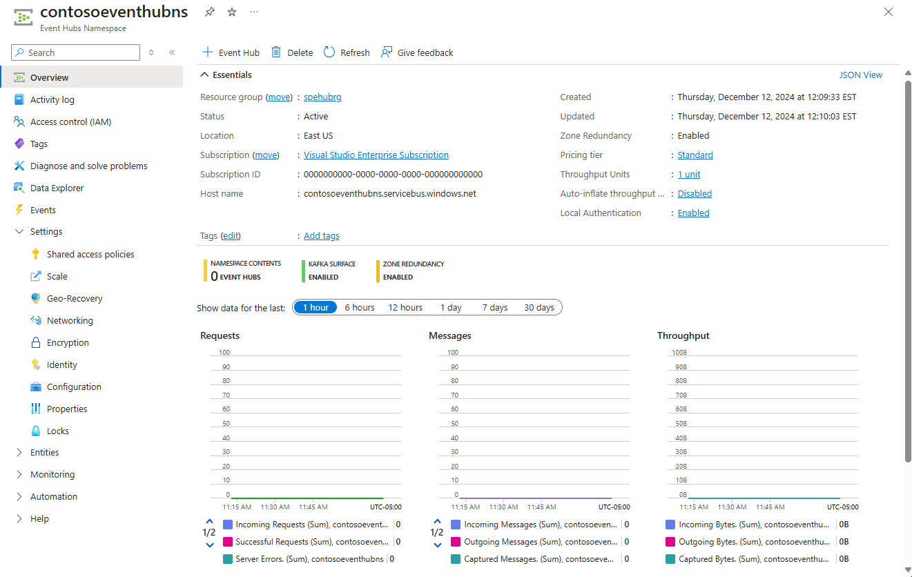 5. Confirm that you see the Event Hubs namespace page similar to the following example: