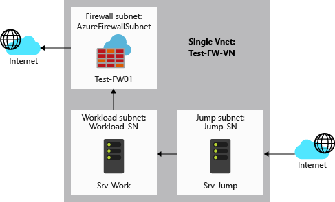 For this article, you create a simplified single VNet with three subnets for easy deployment. For production deployments, a hub and spoke model is recommended. The firewall is in its own VNet. The workload servers are in peered VNets in the same region with one or more subnets.