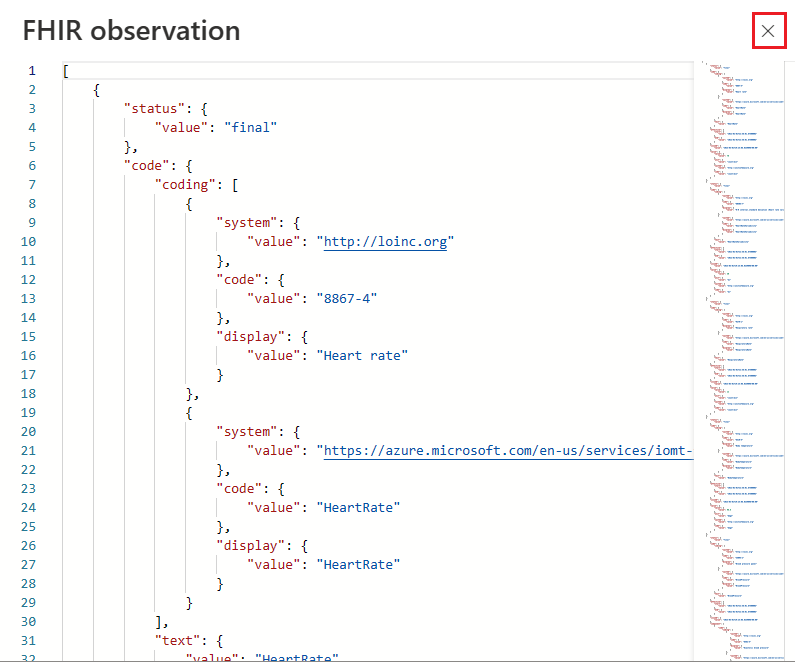 5. Use the X in the corner to close the Normalized message and FHIR observation boxes.